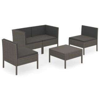 5 pcs conjunto lounge de jardim c/ almofadões vime PE cinzento – PORTES GRÁTIS