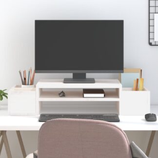 Suporte para monitor 100x24x13 cm pinho maciço branco – PORTES GRÁTIS