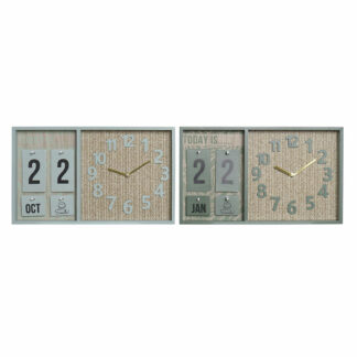 Relógio de Parede DKD Home Decor 61 x 4,5 x 66 cm Natural Branco Ferro Madeira MDF (2 Unidades)