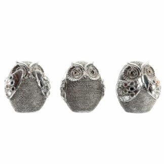 Figura Decorativa DKD Home Decor Multicolor Prateado Coruja Cromado 12 x 11 x 14 cm (3 Unidades)