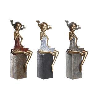 Figura Decorativa DKD Home Decor 16 x 12 x 37 cm Mulher Vermelho Cinzento Azul (3 Unidades)