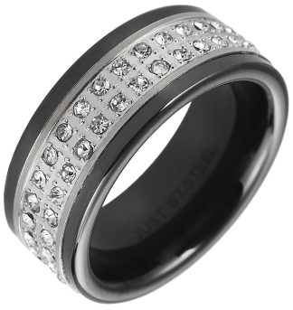 Just® Anel Porina em Cerâmica Preto com Prateado e Pedras Incrustadas – 64
