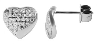 Brincos Coração em Prata de Lei 925 com Zircôrnias e Banhados a Ródio