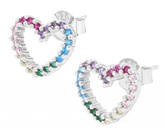 Brincos Coração em Prata de Lei 925 com Zircônia e Banhados a Ródio