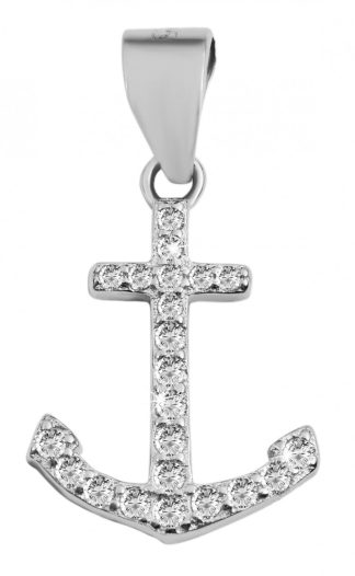 Pingente Âncora em Prata de Lei 925 sem Corrente com Zircônias Banhado a Ródio