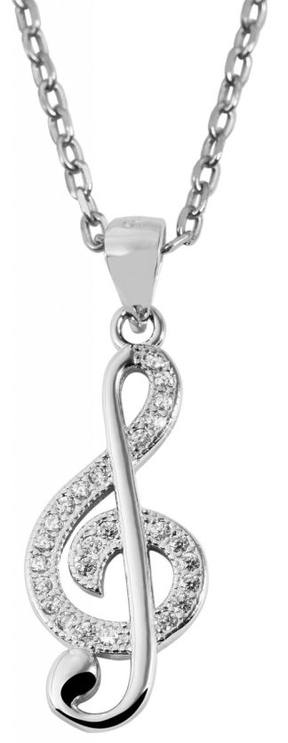 Pingente Nota Musical em Prata de Lei 925 Norina sem Corrente com Zircónias Banhado a Ródio