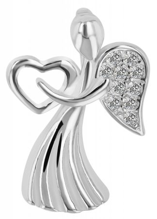 Pingente Anjo em Prata de Lei 925 sem Corrente com Zircônias Banhado a Ródio