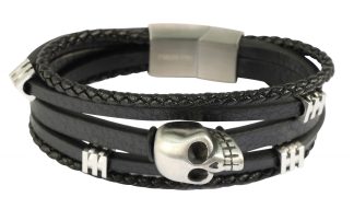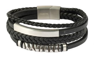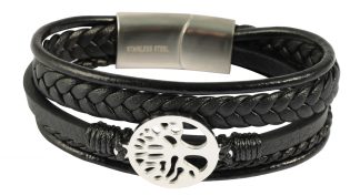 Akzent® Pulseira em Couro com Elementos em Aço Inoxidável 0096