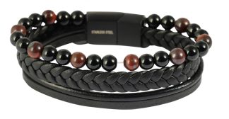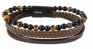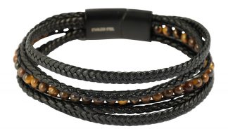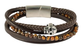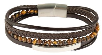 Akzent® Pulseira “Baxter” em Pele Genuína e Pedras Olho de Tigre 0353
