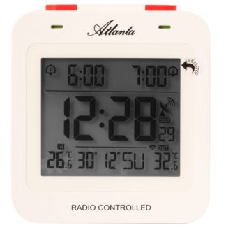 Despertador Atlanta com Controlo por Rádio, Branco, com Indicação da Temperatura Interior e da Iluminação