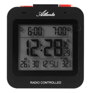 Despertador Atlanta com Controlo por Rádio, Preto, com Indicação da Temperatura Interior e da Iluminação