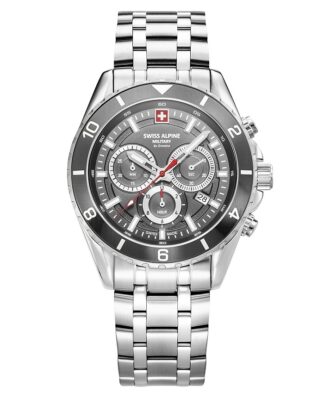 A combinação de precisão, confiabilidade e resistência é atraente e fascinante. Os relógios brilham com um visual esportivo e são feitos de materiais de alta qualidade. Outro ponto positivo dos relógios Swiss Alpine Military são os excelentes mostradores legíveis.O relógio Swiss Alpine Military oferece um alto grau de conforto de uso, é funcional, à prova d’água e ainda assim estético. A garantia mundial de 3 anos enfatiza o nosso compromisso em produzir relógios suíços da mais alta qualidade.