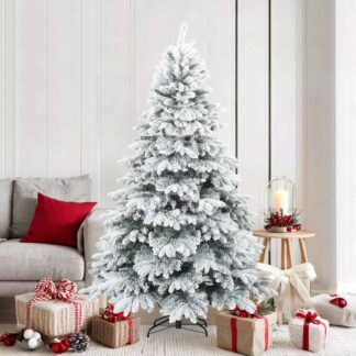 Árvore de Natal Artificial Moderna Hasteada com Neve Flocada – PORTES GRÁTIS