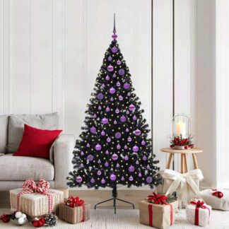 Meia árvore de Natal artificial com suporte 180 cm PVC preto – PORTES GRÁTIS