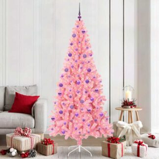 Árvore de Natal Artificial Pré-iluminada Rosa 180 cm PVC – PORTES GRÁTIS
