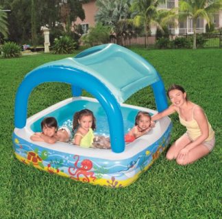 Piscina de brincar com toldo azul 140x140x114 cm – PORTES GRÁTIS
