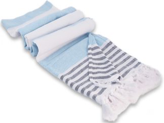 Toalha de Praia Turca de Algodão 100x180cm Azul/Branco Sultão REC50WZ3