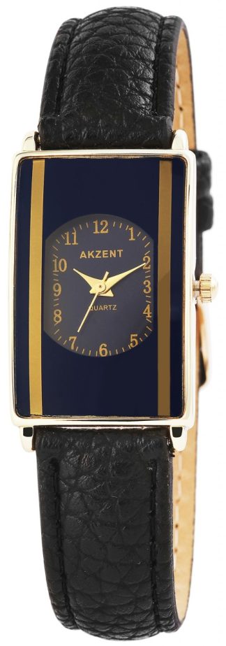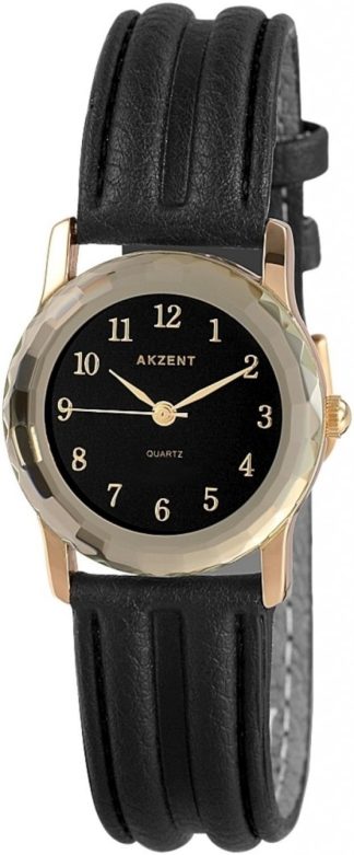 Relógio Akzent® Mulher com Bracelete em Couro Genuíno Preto – SS730300