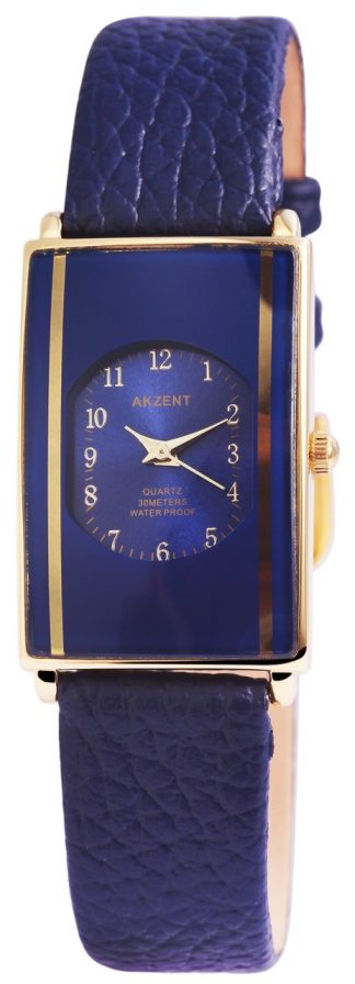 Relógio Akzent® Mulher com Bracelete em Couro Genuíno Azul – SS730300