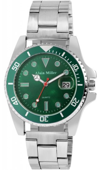 Relógio Alain Miller® Homem Verde com Data em Aço Inoxidável – 0108