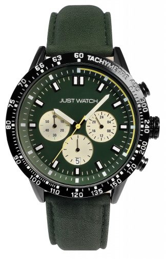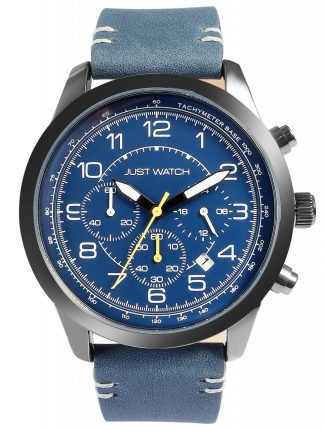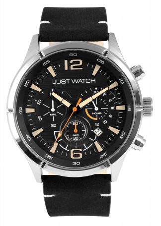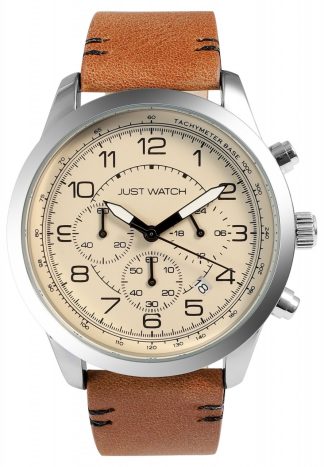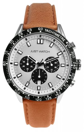 Relógio Just® Cáspio Homem Cronógrafo com Pulseira de Pele Genuína