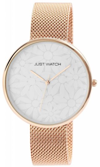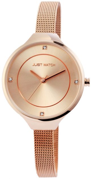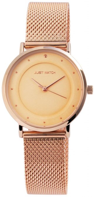 Relógio Just® Mulher Rosa Dourado com Bracelete em Aço Inoxidável – 0073