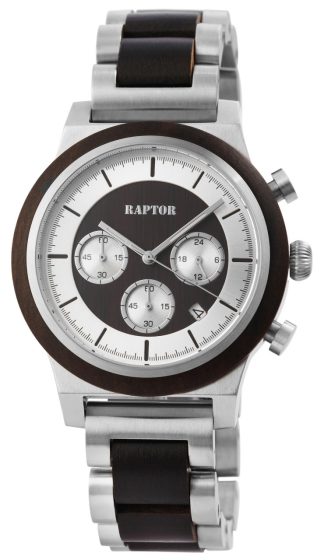 Relógio Raptor ® Homem Cronógrafo com Pulseira em Aço Inoxidável e Madeira