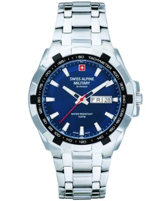 A combinação de precisão, confiabilidade e resistência é atraente e fascinante. Os relógios brilham com um visual esportivo e são feitos de materiais de alta qualidade. Outro ponto positivo dos relógios Swiss Alpine Military são os excelentes mostradores legíveis.O relógio Swiss Alpine Military oferece um alto grau de conforto de uso, é funcional, à prova d’água e ainda assim estético. A garantia mundial de 3 anos enfatiza o nosso compromisso em produzir relógios suíços da mais alta qualidade.