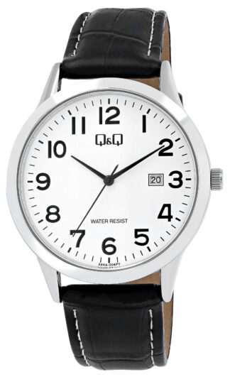 Q&Q Herrenuhr mit Lederimitat, Ø 40 mm, schwarz/ silberfarben/ weiß