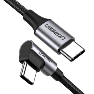 Cabo USB-C para USB-C Ugreen US255 Angulado, 60W, 3A, 1m, Cinza