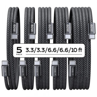 Cabo USB-C para USB-C Lisen, 60 W, 3 A, pacote com 5 unidades (2 x 1 m, 2 x 2 m, 1 x 3 m), preto YL0123070010