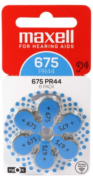 Maxell® Pilhas para Aparelhos Auditivos – 675 PR44 – Blister 6 un.