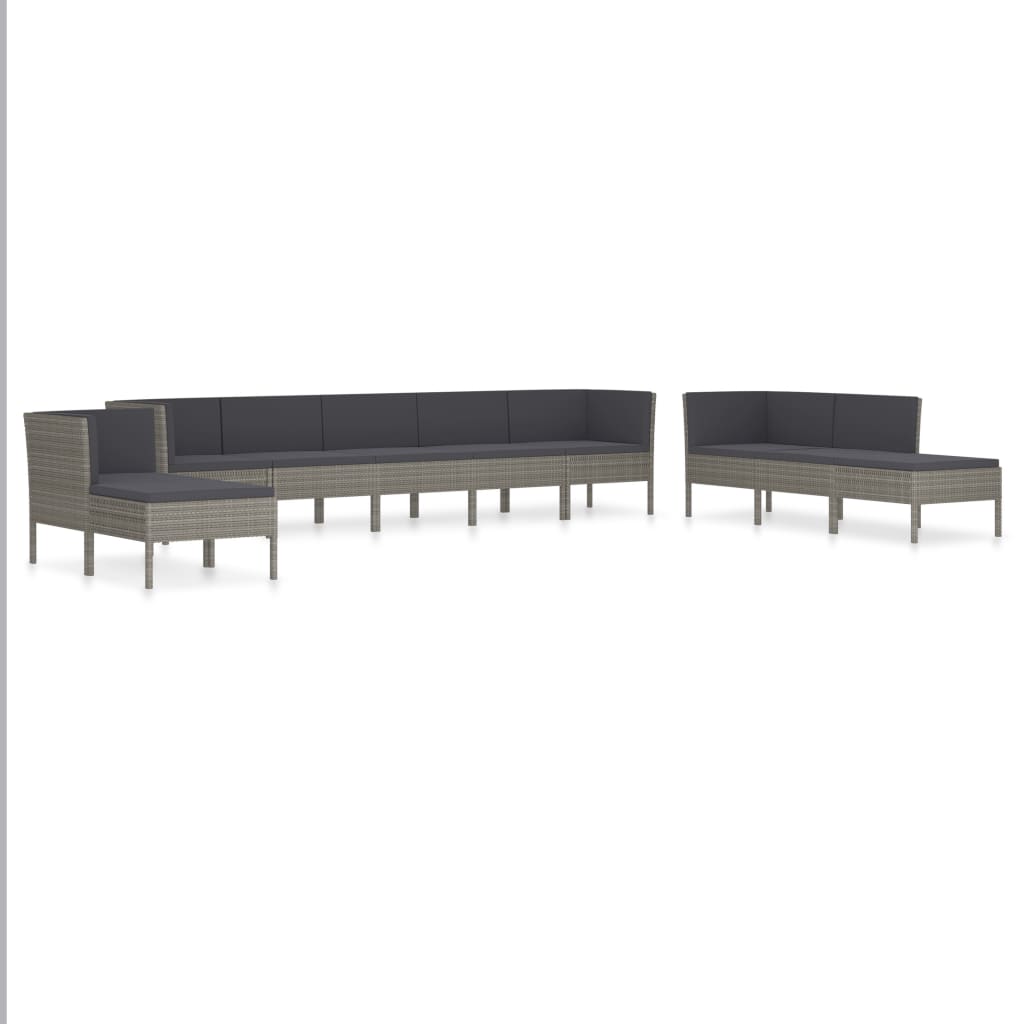 O conjunto possui 10 peças, para que possa escolher diferentes configurações e combinações, conforme preferir. Construído a partir de vime PE durável, sobre uma estrutura de aço revestido a pó, este conjunto é forte, robusto e resistente às intempéries. Graças ao vime preparado para qualquer clima, o conjunto lounge é fácil de limpar, resistente e adequado para uma utilização diária. Os almofadões acolchoados grossos e os assentos modernos e extremamente fundos irão ajudá-lo a relaxar. Graças…