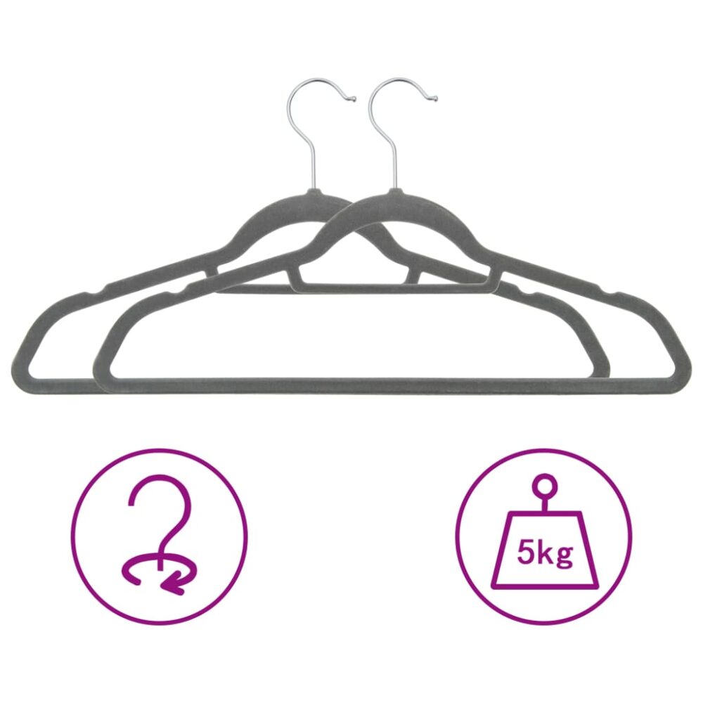 100 pcs conjunto de cabides antiderrapantes veludo cinzento - PORTES GRÁTIS