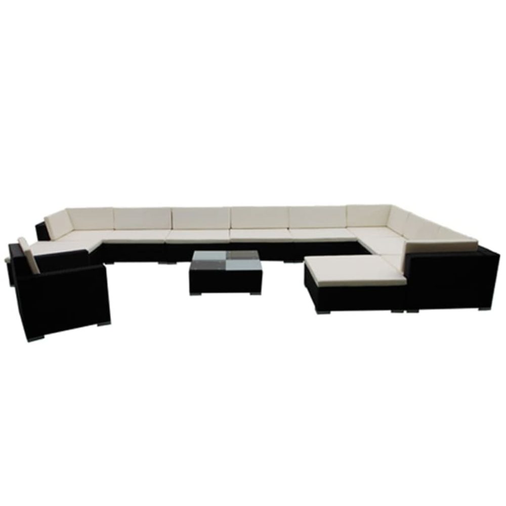12 pcs conjunto lounge de jardim c/ almofadões vime PE preto - PORTES GRÁTIS