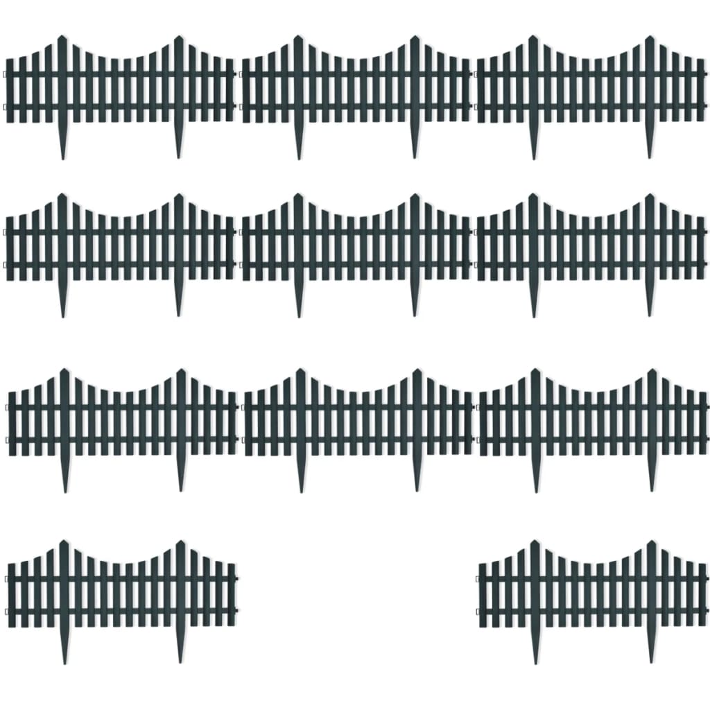 Cada uma das peças interconectáveis possui dois espigões que permitem prendê-las facilmente ao chão, e juntas perfazem um comprimento total de 10 metros. Cada peça tem uma altura de 16,2 – 32 cm (sem espigão). A nossa divisória de relvado é feita em polipropileno de alta qualidade, o que lhe irá proporcionar anos de utilização.
