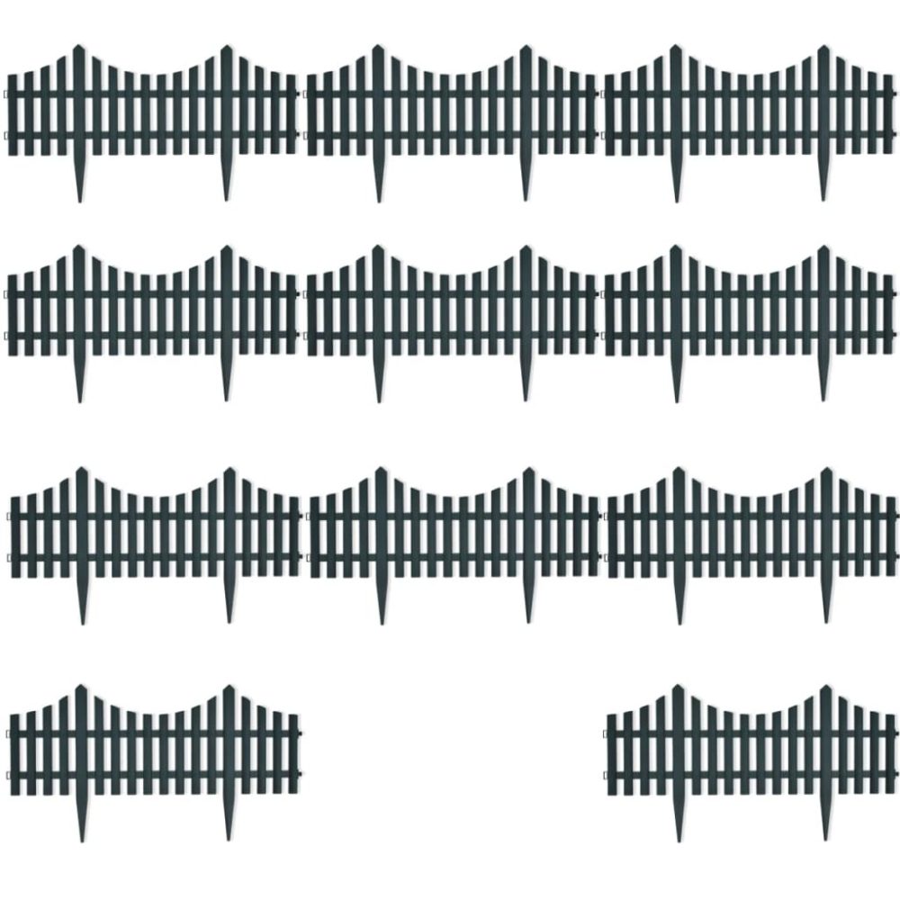 Cada uma das peças interconectáveis possui dois espigões que permitem prendê-las facilmente ao chão, e juntas perfazem um comprimento total de 10 metros. Cada peça tem uma altura de 16,2 – 32 cm (sem espigão). A nossa divisória de relvado é feita em polipropileno de alta qualidade, o que lhe irá proporcionar anos de utilização.