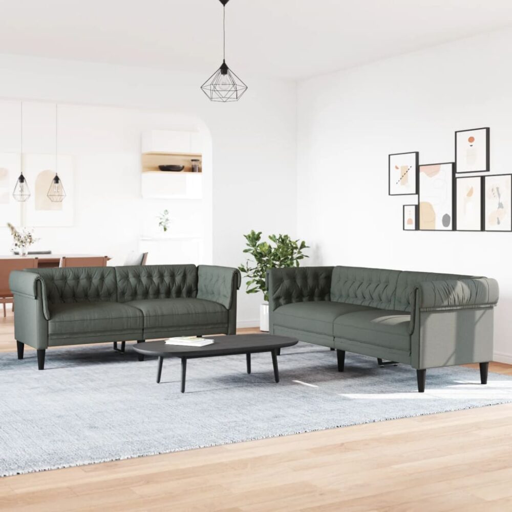 2 pcs conjunto de sofás tecido cinzento-escuro - PORTES GRÁTIS