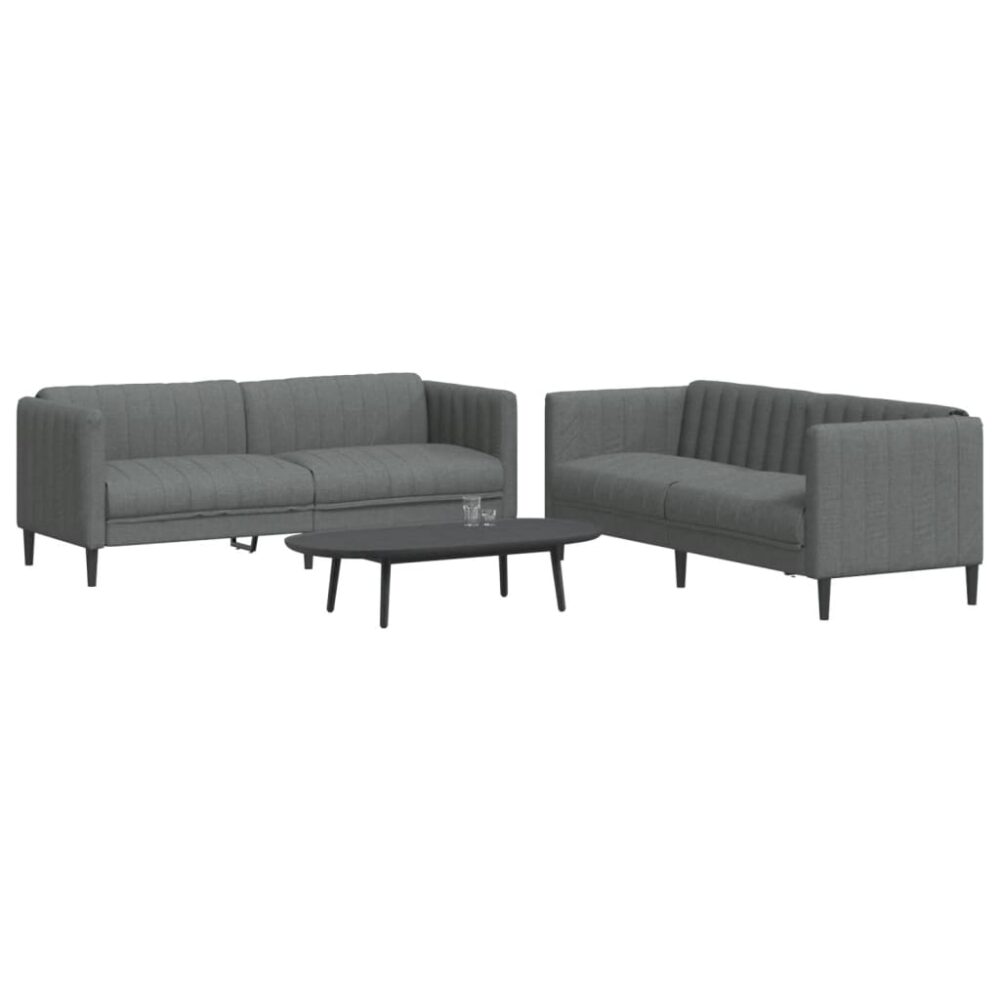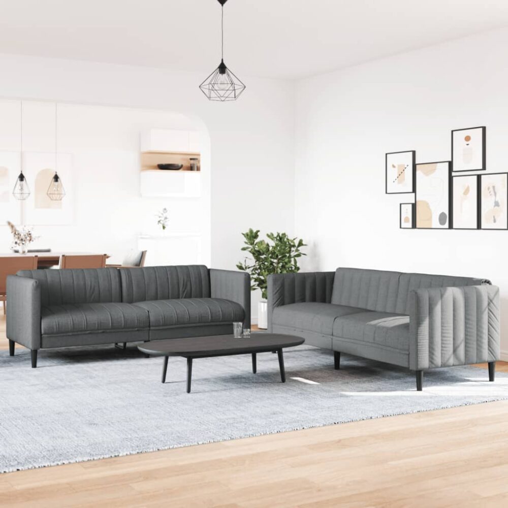 2 pcs conjunto de sofás tecido cinzento-escuro - PORTES GRÁTIS