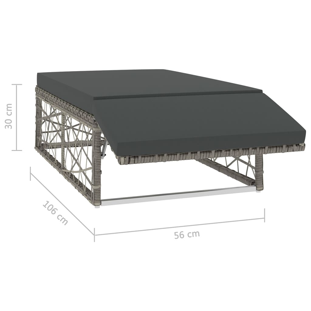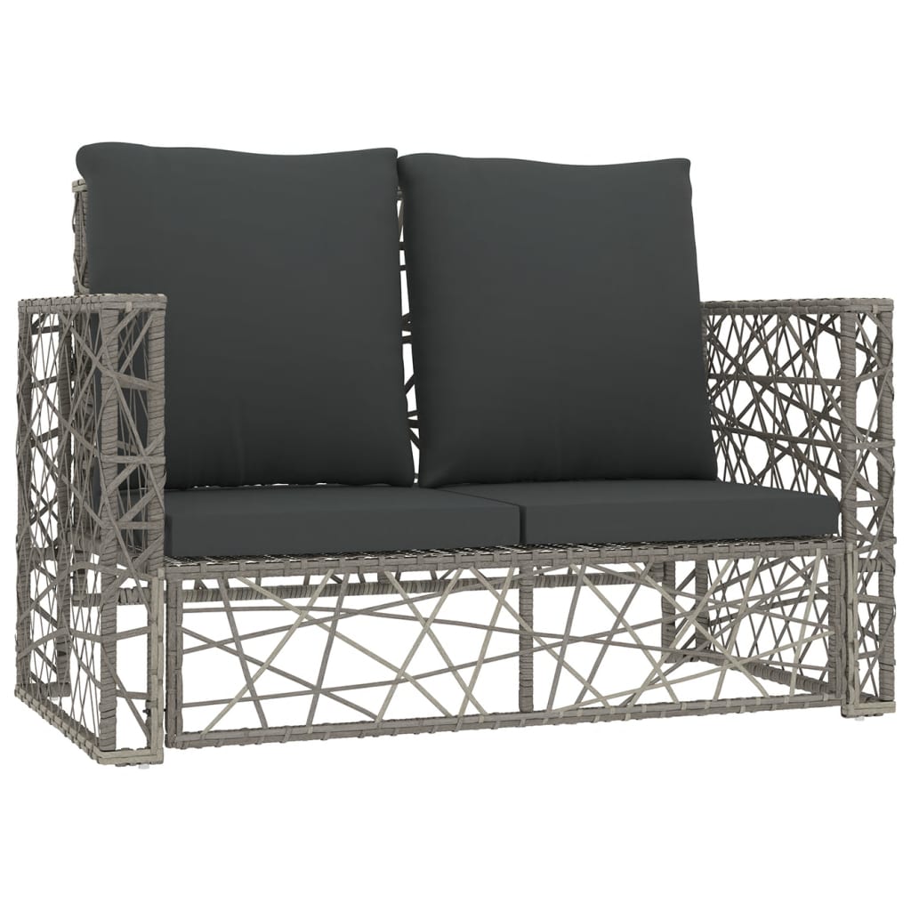 2 pcs conjunto lounge de jardim c/ almofadões vime PE cinzento - PORTES GRÁTIS