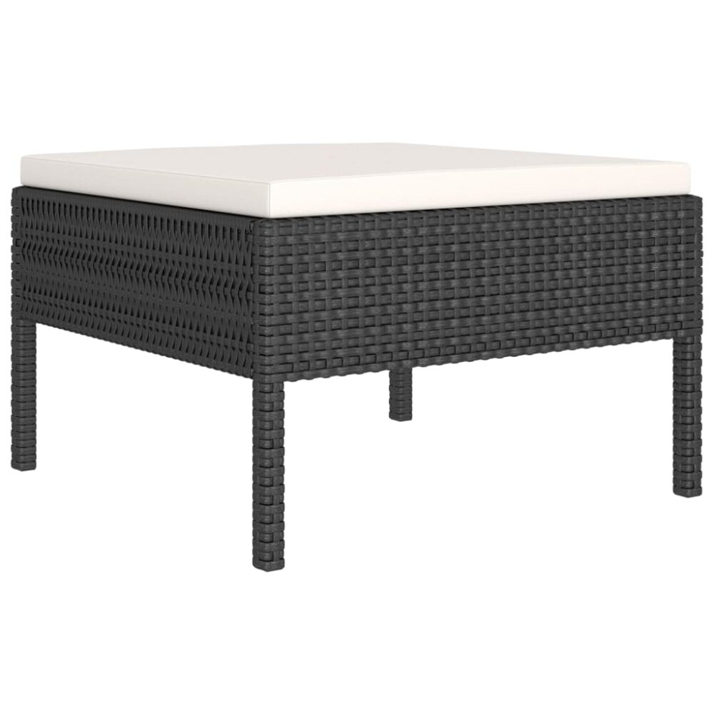 Este conjunto é feito de vime PE durável com uma estrutura de aço revestido a pó, tornando-o forte, robusto e resistente às intempéries. O conjunto lounge é fácil de limpar e adequado para uma utilização diária dado ser feito de vime PE. Os almofadões espessamente acolchoados e os assentos modernos e extremamente fundos irão ajudá-lo a relaxar. O apoio para os pés permite-lhe descansar os seus pés. Pode mover este conjunto com grande facilidade graças ao seu design leve e modular.