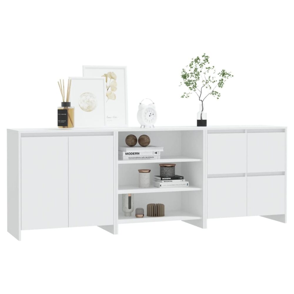 Estes aparadores são um complemento decorativo e prático perfeito para a sua decoração. Estes armários de apoio fornecem um amplo espaço de arrumação para manter os seus artigos essenciais diários organizados e ao seu alcance. O tampo resistente é perfeito para expor objetos decorativos, molduras e vasos com plantas. Estes armários de arrumação são ainda fáceis de limpar com um pano húmido.