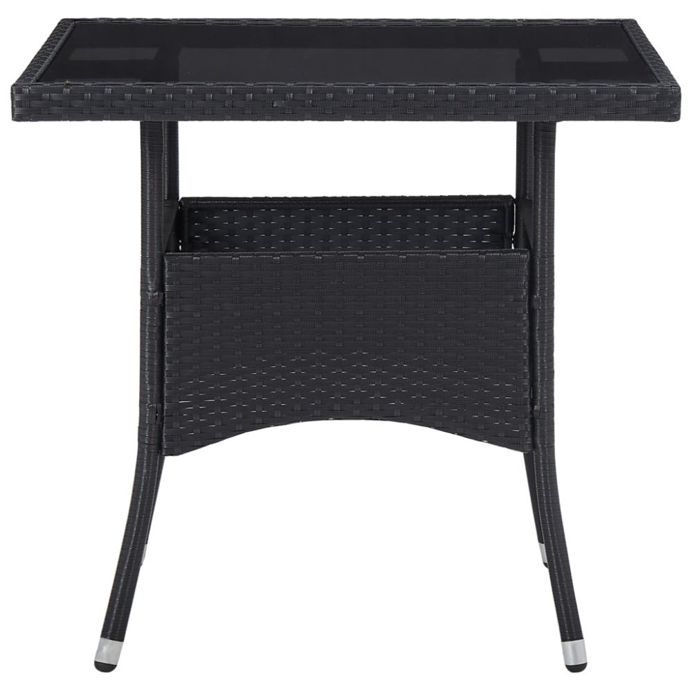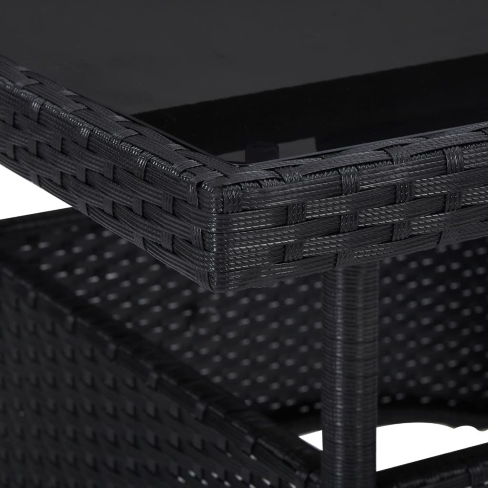 3 pcs conjunto de jantar para jardim vime PE e vidro preto - PORTES GRÁTIS