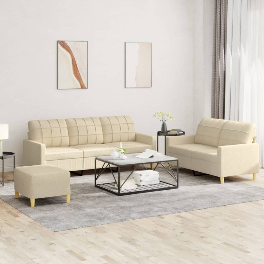 3 pcs conjunto de sofás com almofadões tecido cor creme - PORTES GRÁTIS