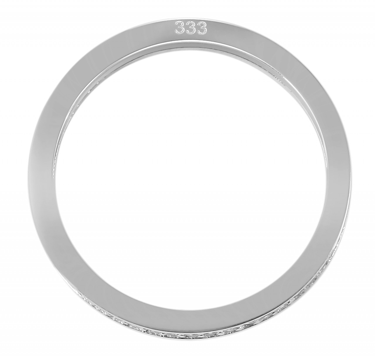 O anel feminino feminino é feito de ouro branco 333/- de alta qualidade e apresenta um design sutil e discreto com acabamento superficial polido. A faixa do anel é decorada com pedras brilhantes de zircônia. O anel está disponível nos tamanhos 50 – 60, tem largura de 2 mm e espessura de 1,5 mm. Graças ao seu design elegante e atemporal, esta elegante joia brilha com qualquer roupa. Também é ideal como presente porque o material de alta qualidade e o acabamento elaborado fazem deste anel um companheiro para sempre.