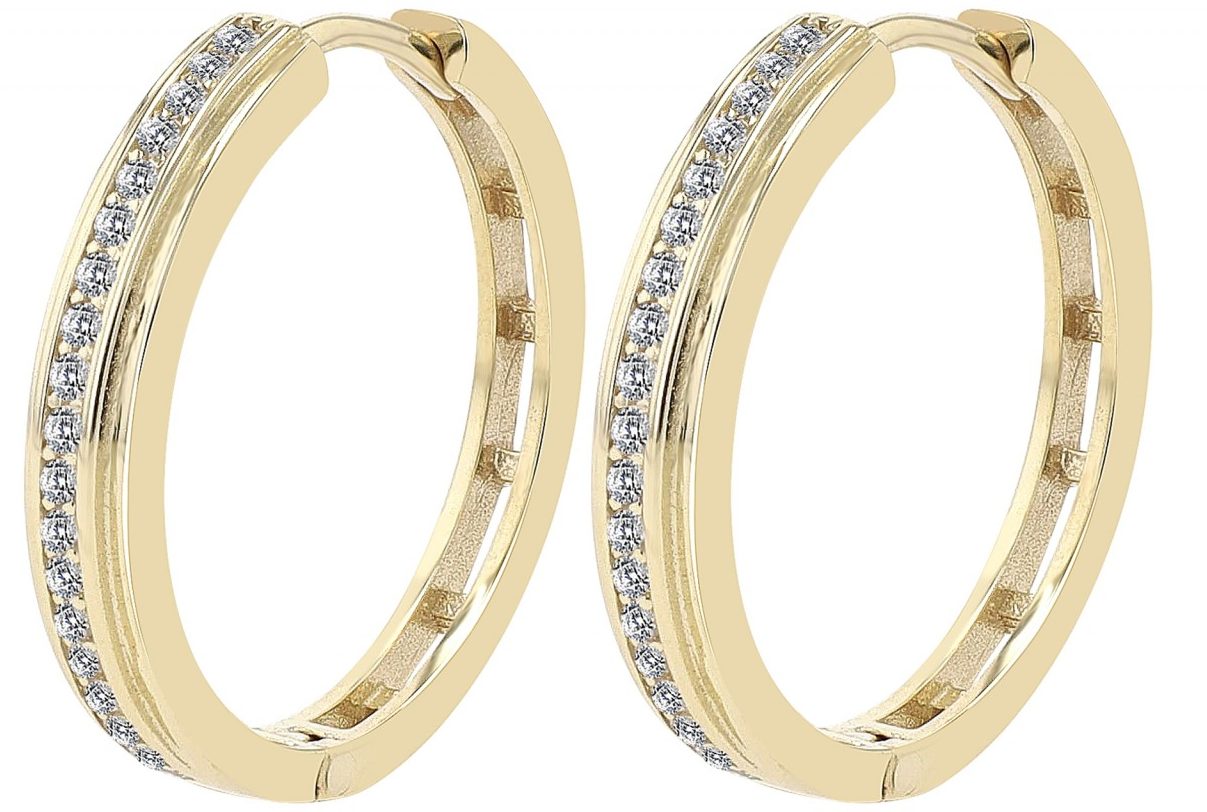 Descubra o brilho dos nossos brincos de argola em ouro amarelo 333 polido, que impressionam pela sua beleza. Feitos de ouro de alta qualidade, estes brincos de argola de 8 quilates irradiam pura elegância. O uso deste material de alta qualidade confere a estes brincos de argola dobráveis uma durabilidade única e um tom dourado quente que chama a atenção. Com diâmetro de 17,5 mm, largura de 3,5 mm e espessura de 2 mm, estes brincos de argola são uma combinação harmoniosa de tamanho e elegância. Eles não são grandes demais para serem intrusivos, mas grandes o suficiente para atrair a atenção. O verdadeiro esplendor destes brincos é revelado na frente, onde brilhantes pedras de zircônia capturam e refletem a luz.