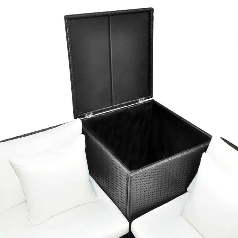 Graças ao vime à prova de intempéries e impermeável, o conjunto lounge é fácil de limpar, resistente e adequado para uso diário. O assento possui uma estrutura robusta de aço revestido a pó, que é altamente durável. Também é leve, facilitando a sua deslocação. O baú de armazenamento à prova de intempéries oferece um espaço ideal para guardar os seus cobertores, almofadas, brinquedos, livros e outros itens.