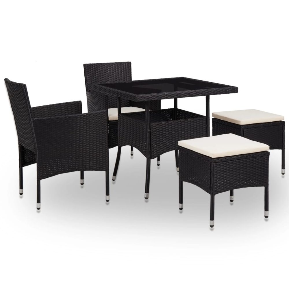 Feito de vime PE com proteção UV e uma estrutura de aço forte revestido a pó, este conjunto de jantar é resistente às intempéries e robusto, permitindo-lhe uma utilização fiável durante muitos anos. O tampo de vidro temperado reforçado cria uma superfície suave e fácil de limpar. Este conjunto pode acomodar até 4 pessoas com bastante conforto. Cada assento possui uma almofada removível acolchoada e espessa para um maior conforto durante o tempo de descanso. Todas as capas das almofadas são removíveis e possuem um design com fecho de correr. A construção em vime leve facilita a movimentação, a reorganização e o transporte de cada peça. A entrega inclui 1 mesa de jantar, 2 cadeiras com braços, 2 bancos e 2 almofadas de assento.