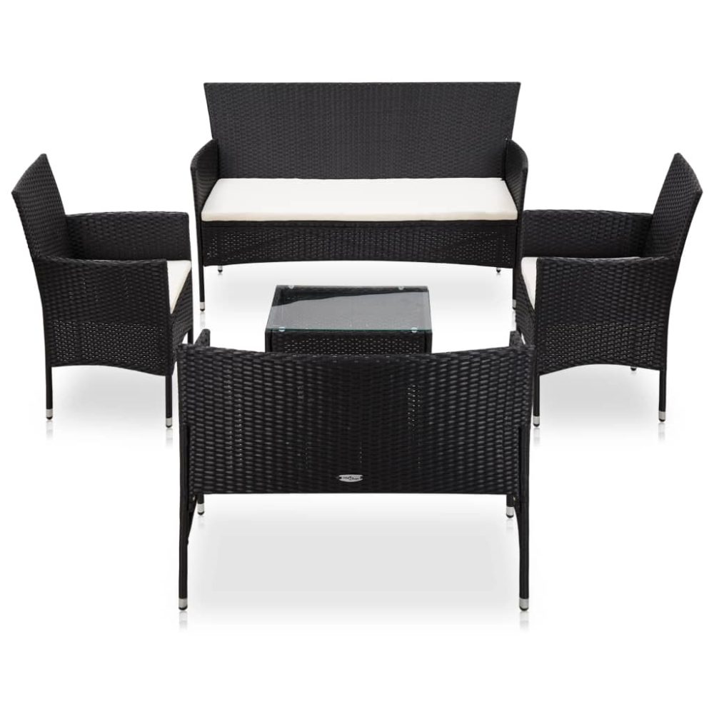 Feito em vime PE resistente às intempéries e impermeável, o conjunto é fácil de limpar, resistente e adequado para uma utilização diária. A estrutura de aço revestido a pó torna o conjunto muito resistente e durável. Graças à construção leve, é fácil de mover. Este conjunto é entregue com almofadões de assento altamente confortáveis e densamente acolchoados. As capas dos almofadões são removíveis e laváveis. Este conjunto precisa de ser montado.
