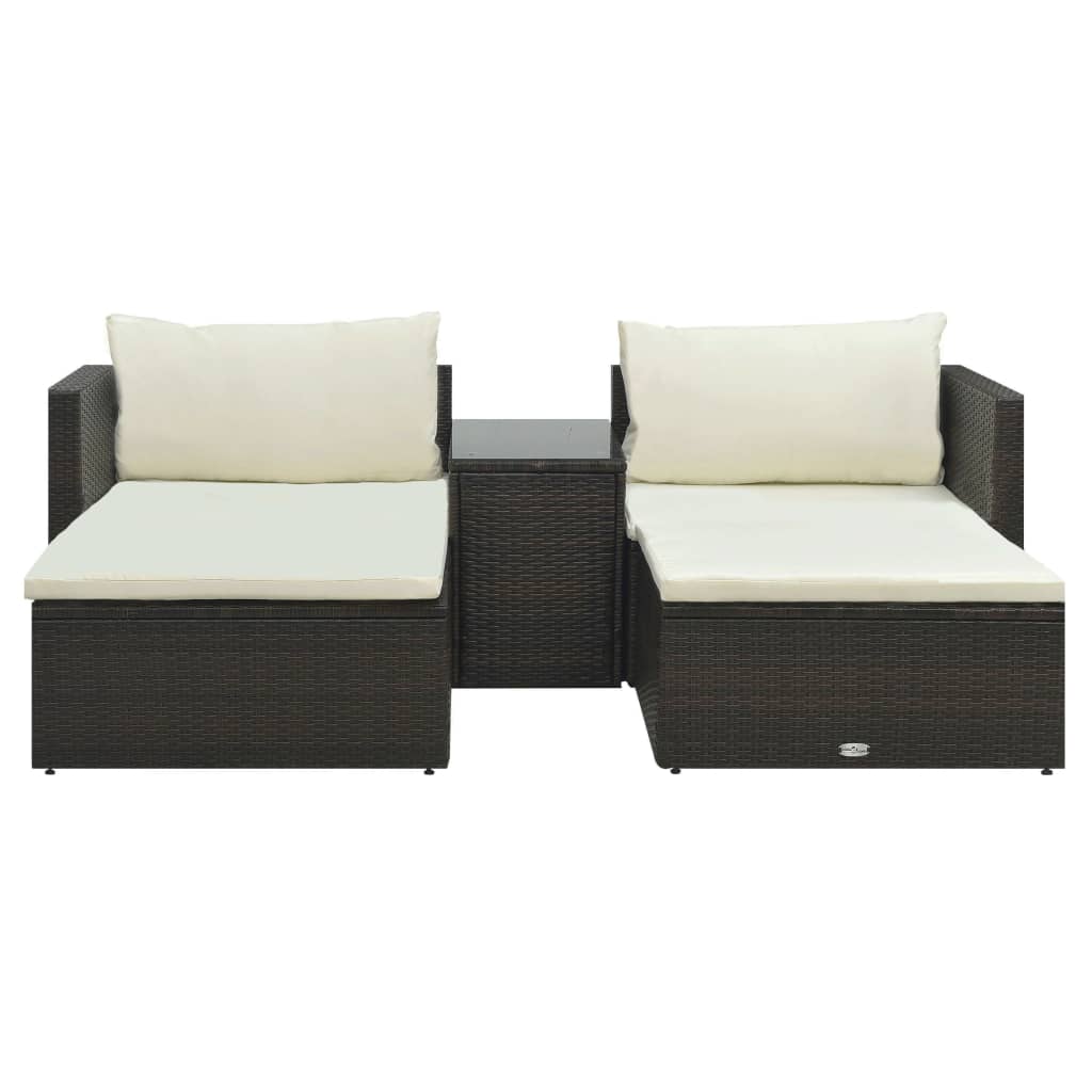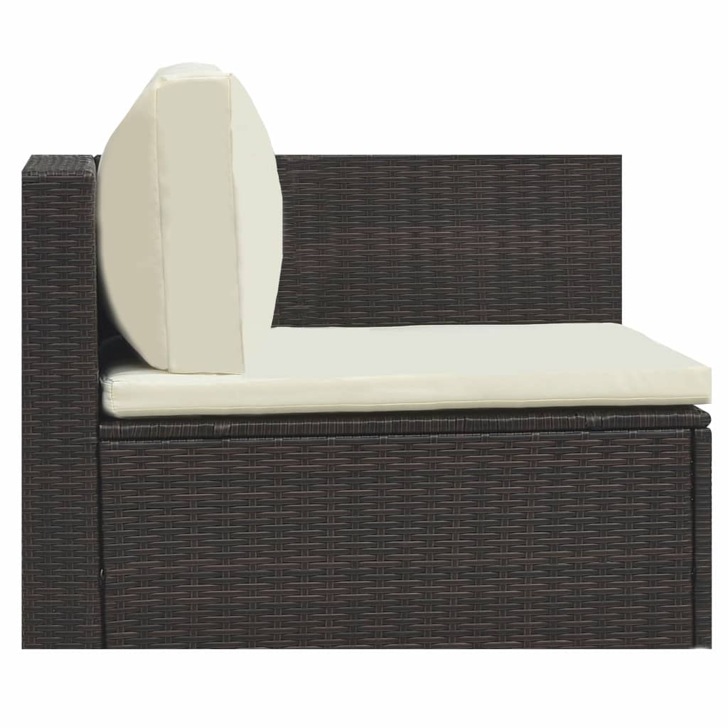 5 pcs conjunto lounge jardim c/ almofadões vime PE castanho - PORTES GRÁTIS